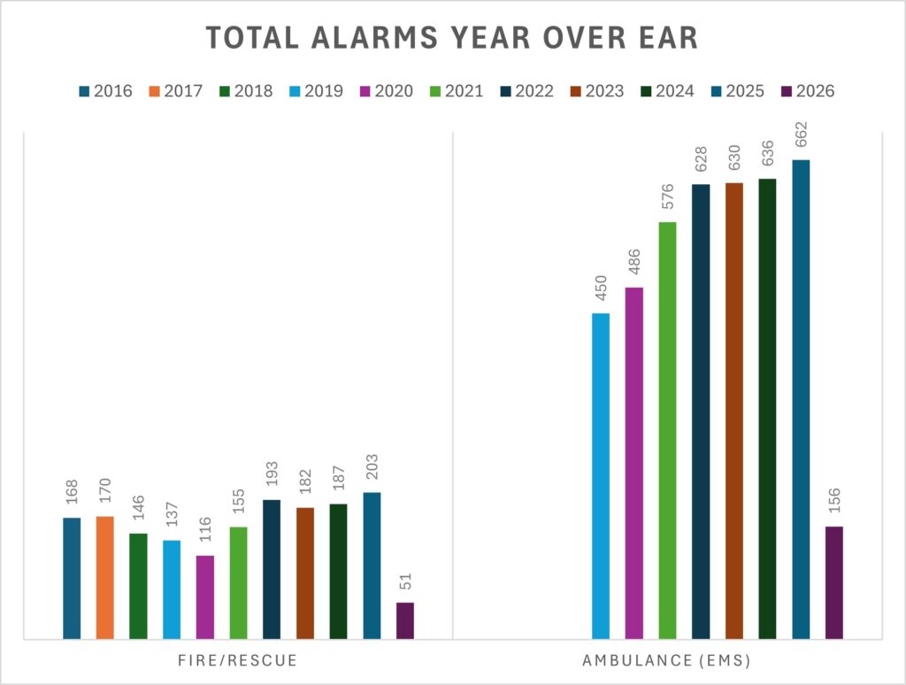 Fire/Rescue 51 Ambulance (EMS) 156 Total Alarms YTD 207
